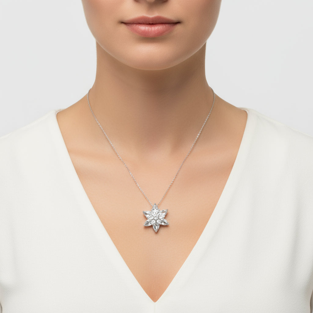 The Lotus Flower is one of the most beautiful flowers symbolizing spirituality, purity, and enlightenment. Blooming in the muddy waters of rainforests, the lotus flower has become a sacred symbol in beliefs like Buddhism and Hinduism. Many ancient civilizations also considered the lotus sacred. What makes the lotus special is its ability to remain clean despite growing in muddy, swampy areas—it can even cleanse itself of a single speck of dust, greeting the world with pristine beauty. You can gift this sacred silver white lotus flower necklace to loved ones or treat yourself. The white or pale lilac hue represents the delicate colors of the lotus, making it one of this year's most fashionable choices. This elegant necklace is perfect as a birthday gift, Valentine's Day present, or for any special occasion. Crafted from 925 sterling silver with rhodium plating, this white lotus flower necklace is handmade like all our silver jewelry. Due to silver and precious stones, the stated average weight may vary by ±10%.