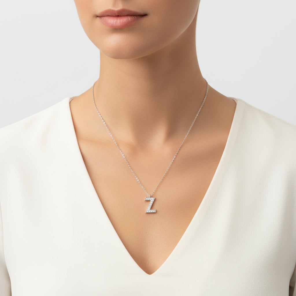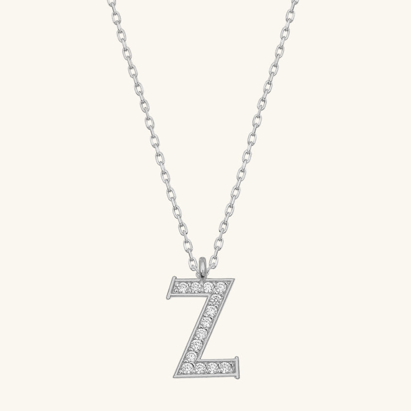 Z Letter Rhodium Plated Women's Silver Necklace